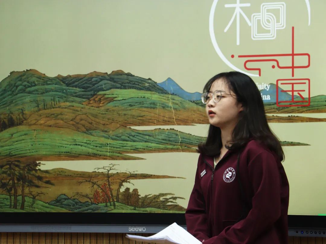 张伟京同学紧紧围绕“道中华”公众号中《赶路的“干饭人”:胡人吃饼骑驼俑从北齐将门墓中带出的历史密码》一文,为同学们分享了她的学习感悟,她说:“近一个月的学习以来使我和同学们在各种层面对中华文化有了更深刻的理解和感悟,也相信在接下来的时间里我们仍会不断学习“道中华”内容并积极从多方面了解中华文化,不断塑造自身品格,成为传播和发扬中华文化的先进青年力量!”