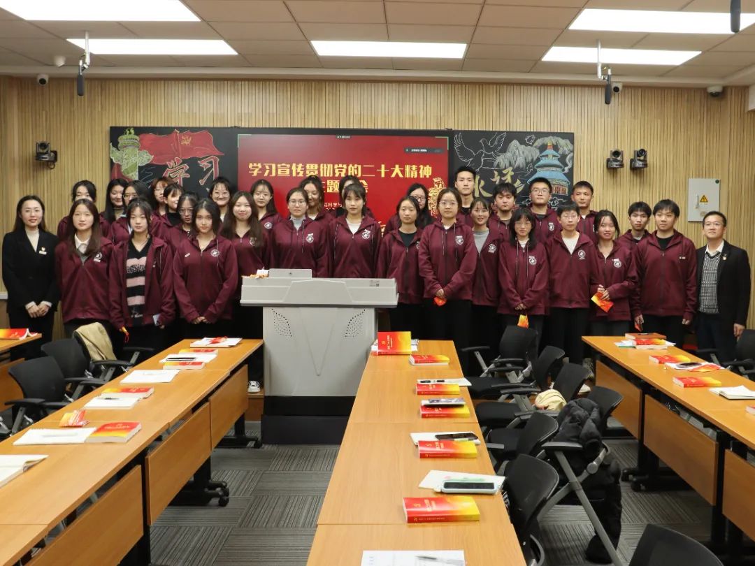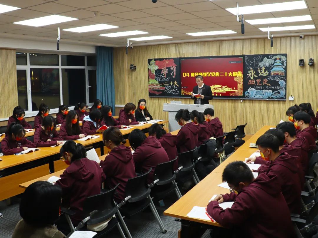 会上,班导师曹红光老师领读了党的二十大报告主题,并从理解党的二十大意义和党的二十大主题两个方面进行了详细讲解,带领同学们共同学习党的二十大报告。