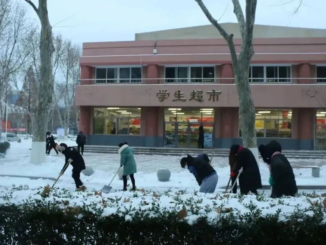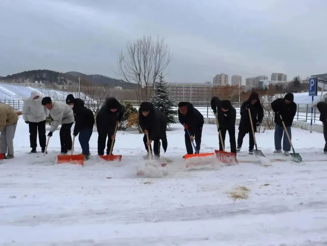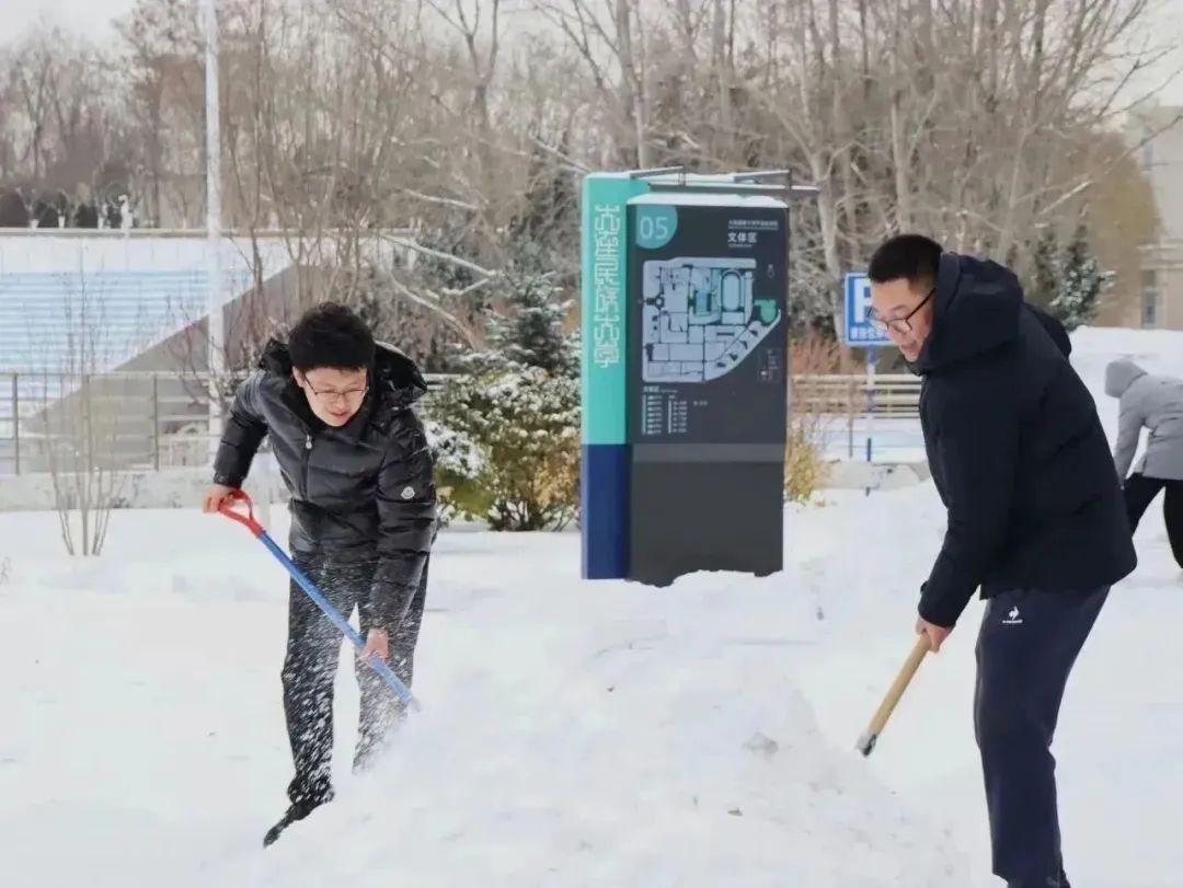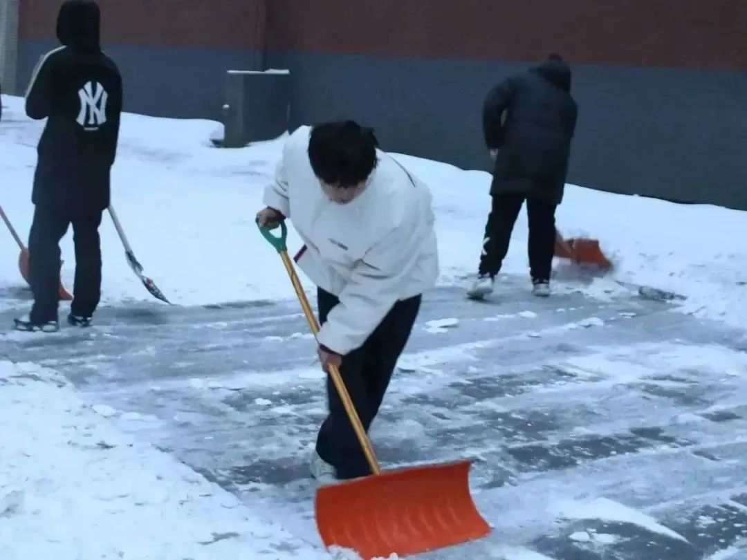 生科ers齐心协力,干劲儿十足,推、铲、扬各种方式齐上阵,奋力清除冰雪。尽管北风凛冽,他们的热情却丝毫没有被寒冷所影响,彼此相互鼓励和交流。他们的身影在寒风中显得格外坚韧,为这个冰冷的冬日带来了希望与温暖。