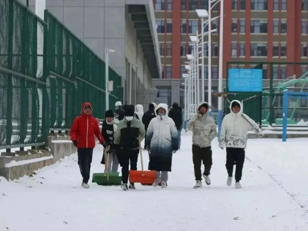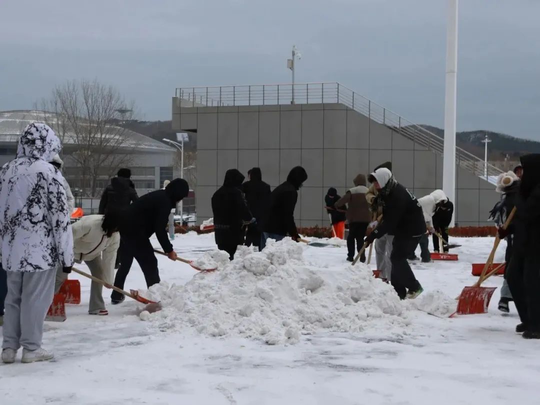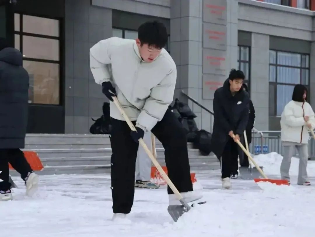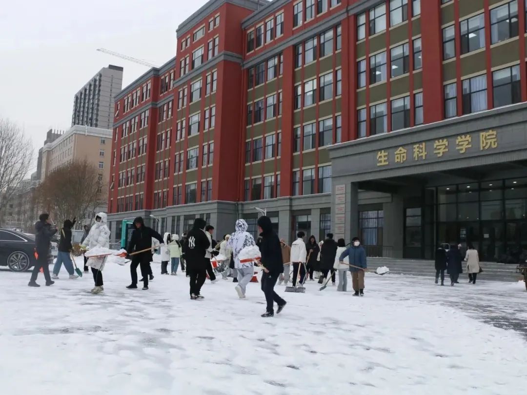 寒冬已至,大雪纷飞,2023年12月14日晚,滨城迎来了入冬以来的第一场暴雪。第二天清晨银装素裹的校园映入眼帘,白雪如霜,雪落扬扬。大雪虽然带来了美景,却也带来了出行的诸多不便。为快速清除路面积雪,保障校园道路通畅,同时缓解校内环卫人员的除雪压力,生科ers带着朝气与热情聚集在一起,不顾严寒,积极行动,为同学的出行开辟出坦途。