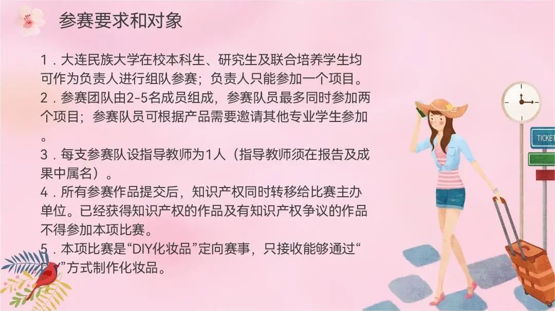 化妆品作为我们最常见常用的日用品之一,在我们的生活中扮演着重要的角色。可是,每天都在接触化妆品的你,是否了解化妆品的原料都是什么,它们又是怎样发挥作用的?如果你也想得到这些问题的答案,就来参加“连璟杯”化妆品设计大赛吧!