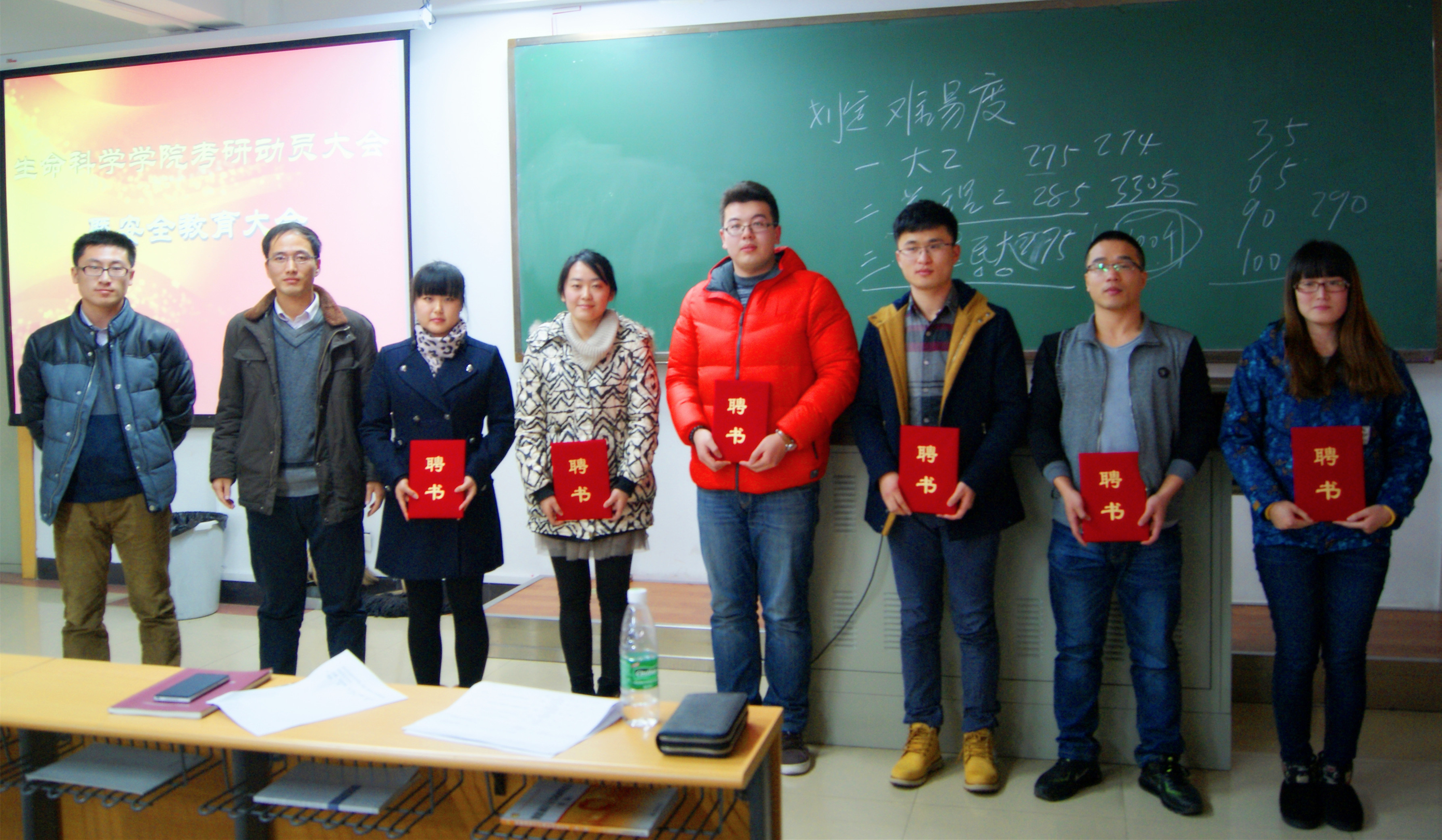 生命科学学院聘请了郭凯、宋春璐、赵曜、宗子超、王晓曚、张历冰6名在读研究生担任学生考研辅导助理,并为他们颁发了聘书。