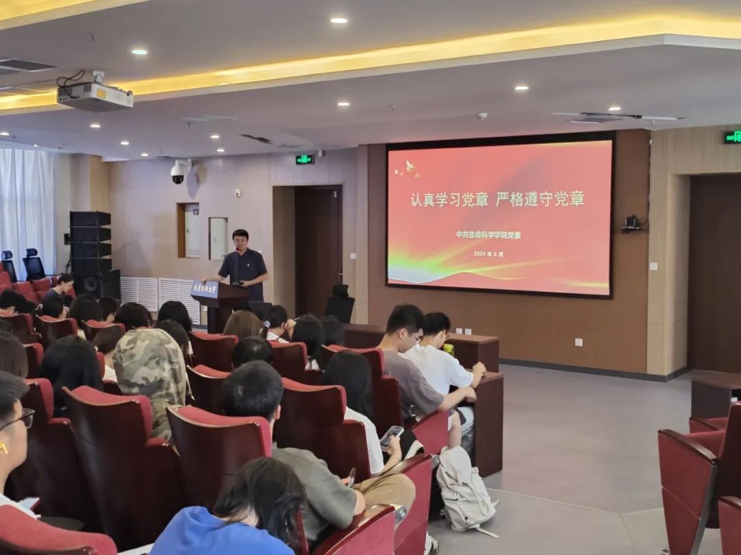 生命科学学院辅导员谭子屹老师对党的二十大党章做了重点讲解,同时围绕党史带领学员们回顾了《中国共产党章程》的修订历程,使大家认识到:与时俱进推进理论创新是思想建党、理论强党的鲜明特色。要求全体学员要认真学习党章,明确党章对党员的要求,时刻以党员标准严格要求自己。