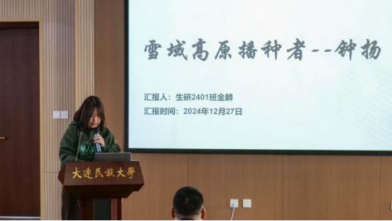 会议第一阶段,各位汇报人讲述了四位科学家感人事迹和科研贡献。在他们身上所展现的精神力量是我们生科人科研信念的灯塔,指引我们不断前进,勇攀科学的高峰。金麟、李腾飞、张月阳、马铭辰4位同学分别以“雪域高原播种者”、“一株济世草,一颗报国心”、“农业科学领域的灯塔”和“大国渔院士”为题,介绍了钟扬、屠呦呦、李振声、麦康森四位科学家的人生历程和科研进展。在他们的事迹中,同学们感受到了那些在艰苦环境条件下依然坚守岗位、无私奉献的科研工作者们的伟大精神,体会到了科研工作者们深厚的家国情怀以及他们为国家和人民所做出的巨大贡献,领略到了科研在国家发展中所发挥的重要作用。