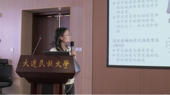 在科研成果汇报中,马浩迪同学做了题为“刺激相应型纳米硒药物递送系统的构建及抗肿瘤活性研究”的汇报,展示了学院新购置小动物活体光学成像系统的应用情况,这一设备能够直观地看到药物在小鼠体内的分布和作用过程,这为药物研究和开发提供了新的研究手段;张珈旗同学的“基于AuNPs/PCZIF-8-ZnO的电化学/光电化学传感器在AFB1检测中的应用”报告,讲述了一种在检测AFB1方面表现出色的传感器技术;姜亚枫同学通过“双功能MOF封装钴掺杂碳点纳米酶驱动的AFB1化学发光/荧光双模式检测”,展示了如何利用纳米酶的特性来实现对食品中常见毒素AFB1的快速、准确检测;信雨林同学介绍了“玉米根系简化细菌群落的定量与其生物防治效果的评价方法”,通过深入研究玉米根系的微生物群落,提出了一种新的定量方法,并探讨了这些微生物群落对农作物病害的生物防治效果;张座铭同学讲解了“一种用于肿瘤检测的NIR-II荧光检测技术”的原理和优势,并通过一系列实验结果展示了其在肿瘤早期诊断中的巨大潜力。