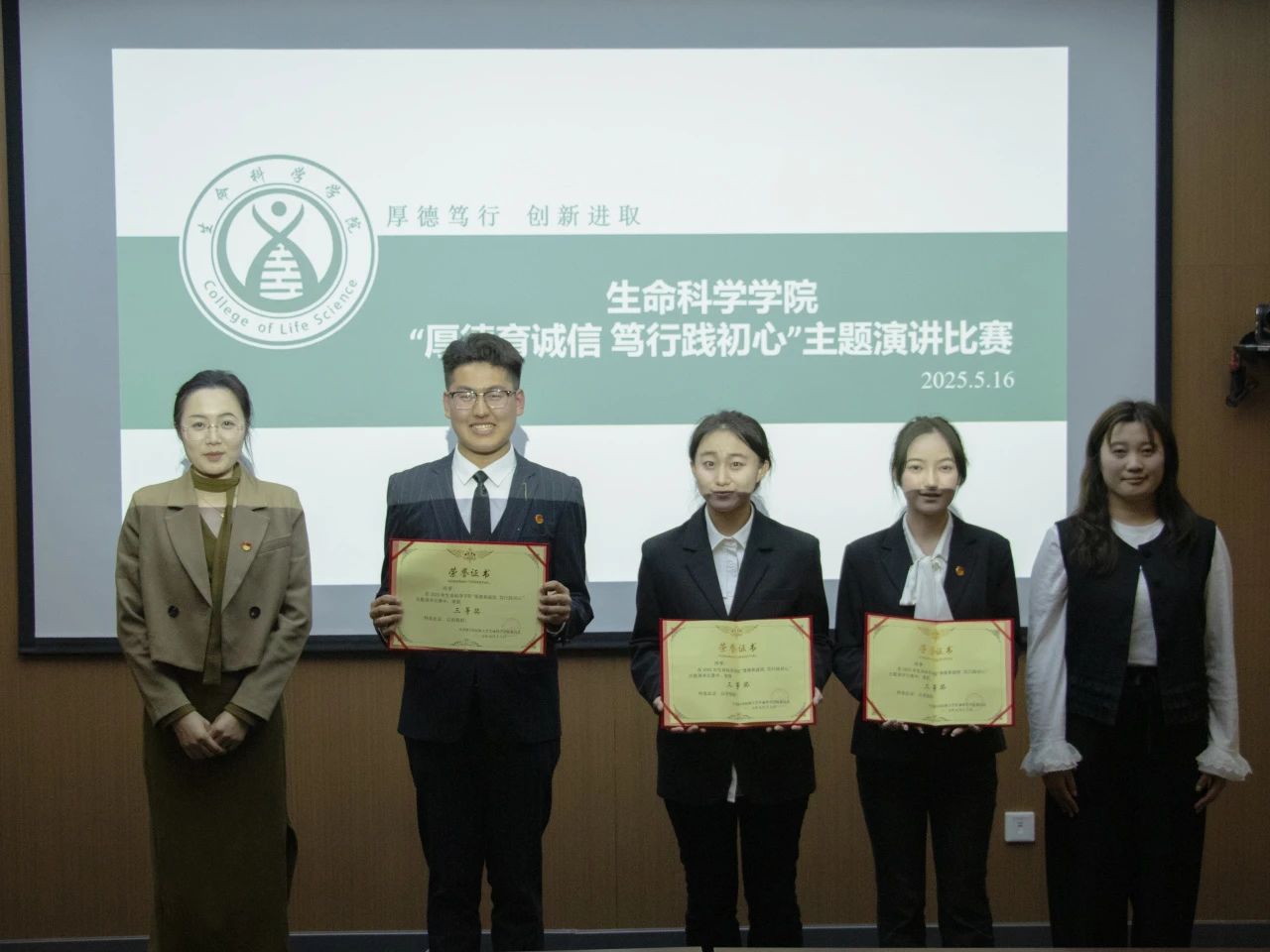 为持续推动“三全育人”综合改革,进一步推进“发展型”资助体系建设,将诚信教育与日常教育相结合,加强对学院学生的诚信教育、感恩教育和励志教育,生命科学学院于5月16日开展以“厚德育诚信 笃行践初心”为主题的演讲比赛。赛场上,选手们以语言为桥梁,讲述诚信故事,弘扬道德之光,用铿锵的言辞与炽热的情感诠释对诚信价值的坚守。现在,让我们一同走进这场比赛,领略选手们的卓越风采吧!