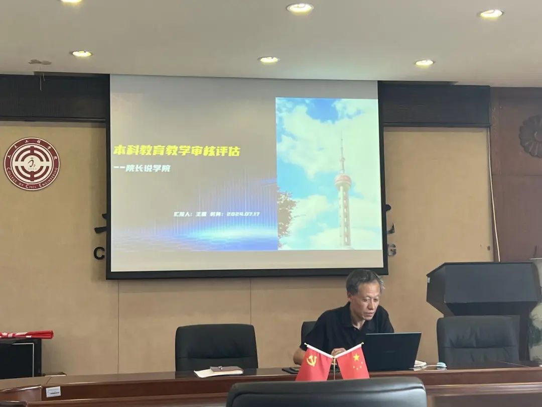 王振院长表示此次会议的目的是“说学院、说专业、展特色、找不足”,认真总结学院及专业建设情况,梳理存在的问题并制定整改措施。首先进行了“院长说学院”,由王振院长介绍了学院审核评估工作的开展情况、包括学院办学方向、培养过程、教学资源、师资队伍建设、学生发展、质量保障等方面取得成绩和不足,对学院“铸品格、双平台、个性化”的育人特色进行了总结。特别针对课堂教学质量提出了具体要求,要求全院教师深入反思和改进教学内容和方法,注重激发学生兴趣,关注学习效果和反馈,及时调整教学设计,把提高课堂教学质量作为首要任务。