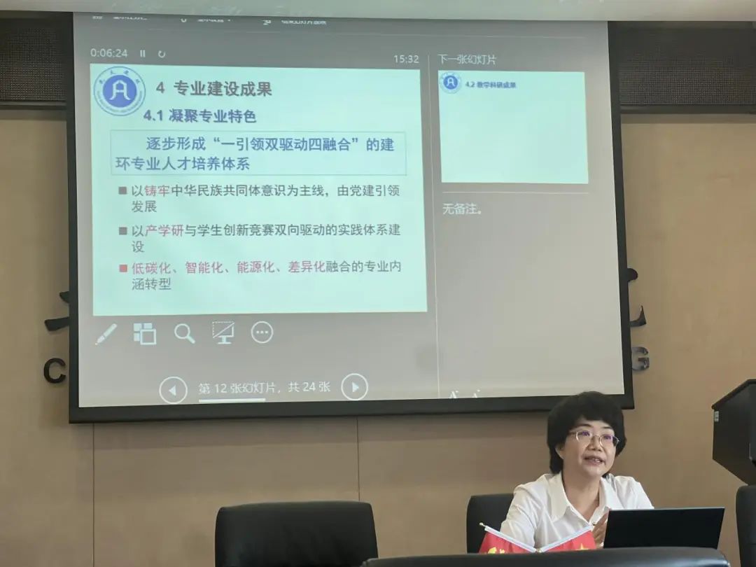 土木工程系主任高凌霞老师、工程管理系主任姜蕾老师、建筑环境与能源应用工程系主任秦海杰老师进行了“系主任说专业”,分别总结了各专业建设发展历程、建设思路、专业特色及建设成效,也深入分析了目前存在的短板与弱项,阐述了专业未来发展思路,切实提高专业建设水平,促进专业发展,把OBE教育理念落实到专业建设过程中。