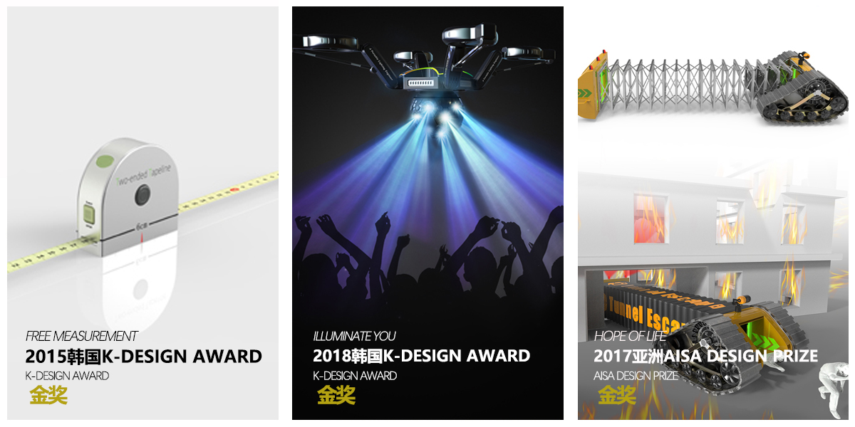 累计获得83项德国红点概念大奖(包括:8项Best of the Best最佳设计奖),220项美国IDEA设计奖(包括:2项金奖、3项银奖、12项铜奖、203项Finalists), 100项德国iF概念奖、天才设计奖、新秀奖(包括:11项年度大奖、40项Best),13项中国红星原创大奖(包括:1项原创银奖、1项未来之星大奖)在内的416项国际、国内顶级设计奖