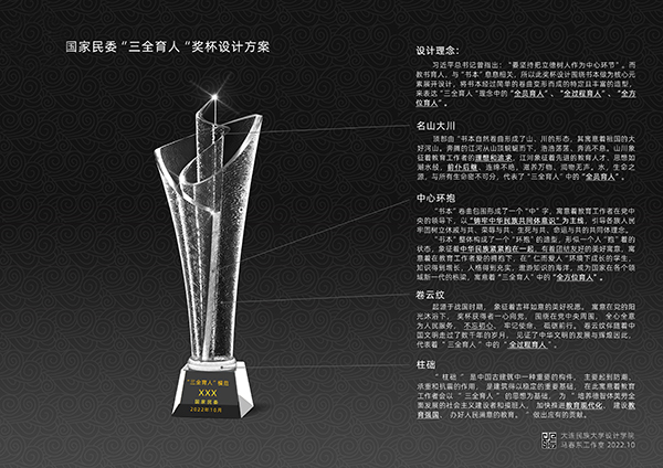 近日,受国家民委教育司委托,在学校党委的部署和指导下,欧冠设计学院组织开展了国家民委“三全育人”模范奖杯设计征集活动,最终郭磊老师设计的《书映山河》奖杯被正式采纳。
