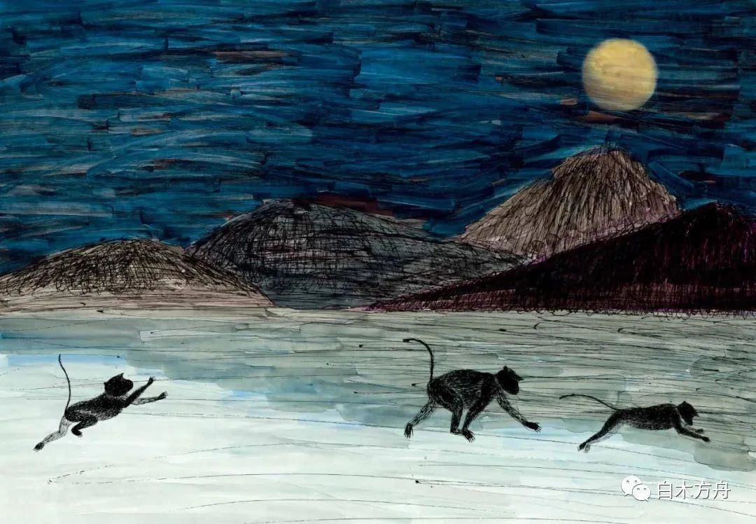 《猴子捞月》是张俊杰同学的毕业设计作品,曾荣获“第九届信谊图画书奖”的最高奖项――“首奖”。从一个侧面,学生作品所取得的成绩也是对我们工作室多年以来坚持的教育方向的肯定。