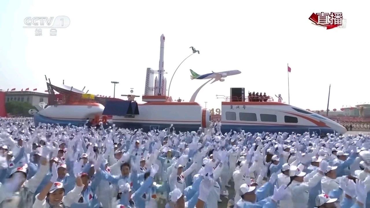 作为伟大复兴18个主题方阵的头车,创新驱动彩车备受瞩目。来自中央美院、清华美院、北京工业大学的国内顶尖设计团队专家组先后设计了20多个方案都被推翻,彩车指挥部不拘一格,邀请2018年创青春青年设计师大赛获奖选手贾小卜所在的上品极致设计团队参与创意设计。历时四个月的攻坚设计,贾小卜团队提交了一份满意的答卷。创新驱动彩车采用分体式设计,打破了以往国庆彩车中从没有过的多车合一的先例。整个彩车由“大众创新”“遨游太空”“出海蛟龙”三辆中型彩车组成,分别以复兴号、天空二号、蛟龙号为主题,搭载神威超级计算机、长征系列火箭、北斗卫星、玉兔二号、C919、“天眼”和海马号。三辆中型彩车在通过主席台时合而为一,车上的部分元素随着机械臂的工作而收拢,形成完整的“复兴号”动车组形象,隐藏在车内的科研人员出现在公众面前,充分表达了“创新是引领发展的第一动力”。