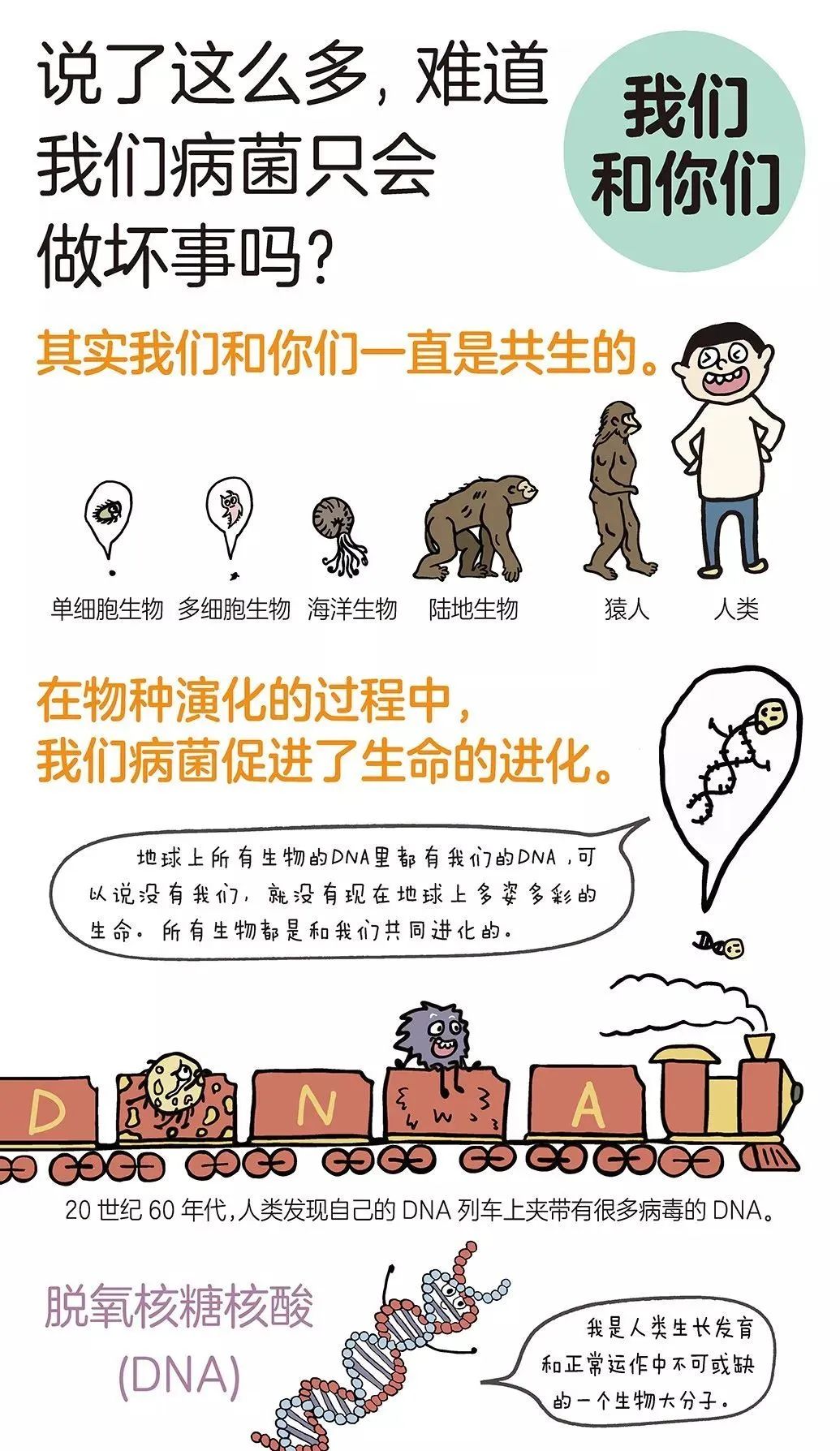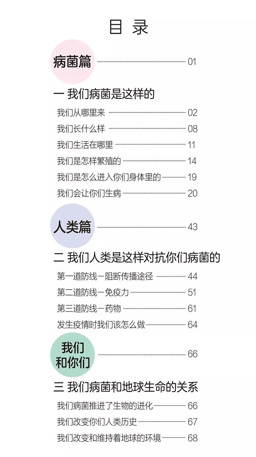 绘本用第一人称将病菌拟人化,让读者更加深入地了解“我们病菌”;又巧妙运用了人称转换,告诉读者“我们人类”是如何面对病菌的产生、传播、危害,做好防护措施;再采用混合人称“我们和你们”,来说明人类和病菌其实都是地球生命的一部分。让小读者在角色转换中感同身受,学会站在不同的角度认识这个世界,理解人类与自然和谐共生的道理。同时,让孩子们用科学知识武装自己,在这场战“疫”中不再恐惧,树立起最终战胜疫情的勇气和力量。
