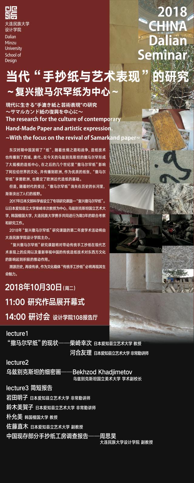 本次会议由设计学院主办,以“复兴撒马尔罕纸”为主题。“复兴撒马尔罕纸”是2017年日本文部科学省设立的专项研究课题,该课题对带动传统手工抄纸在艺术表现上的应用以及重新审视中国的传统造纸技术对东西方文化的影响起到积极的推动作用。欧冠以日本爱知县立大学柴崎幸次教授为中心,携手乌兹别克斯坦国立艺术大学、韩国檀国大学共同进行为期三年的联合考察和研究工作。
