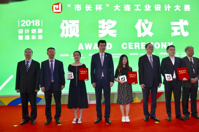 大连设计节开幕式上,2018“市长杯”大连工业设计大赛颁奖仪式顺利举行,大连市市长谭成旭、国家住建部原总经济师李秉仁、中国工业设计协会专职副会长赵卫国、北京光华设计发展基金会副理事长邢雷及大连市相关领导出席并为获奖选手颁奖。