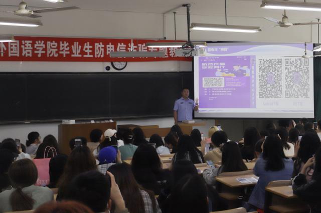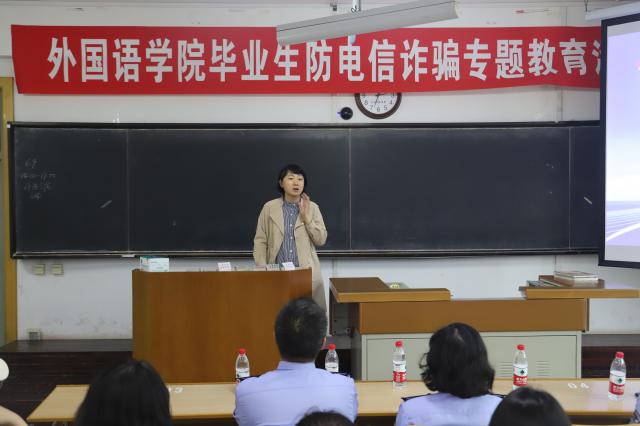 为进一步规范学院毕业生日常教育管理工作,抓好毕业生安全教育环节,提高毕业生防电信诈骗意识,积极推进毕业生就业工作,外国语学院于6月9日召开毕业生文明离校教育活动,学院党总支副书记许海英、大连市公安局开发区分局警官及毕业生辅导员参加本次活动。