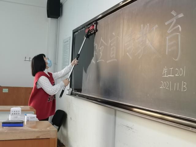 淬炼信仰,任劳任怨。自疫情发生以来,外国语学院积极响应学校倡议,号召全院党员、入党积极分子、学生骨干等主动扛起战“疫”大旗,筑牢校园封闭管理期间疫情防控坚强堡垒。党员干部主动担当、坚守岗位,近百名同学也自发成立志愿队伍,加入到党员服务小组中,帮助校内保洁阿姨打扫二教、食堂、国旗广场室内外卫生,进行防疫区志愿值班,使党旗飘扬在抗疫的最前线。