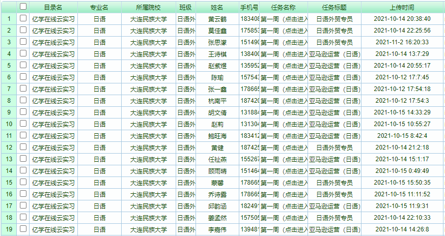为切实做好疫情防控期间毕业生实习管理工作,丰富学生的实习形式,解决后疫情期间的实习困难,日语系携手“亿学云实习平台”,以“云实习”的方式为部分学生提供了毕业实习的机会。2021年10月25日至2021年11月5日,日语系组织2018级共计31人通过亿学在线云实习平台,开展了为期4周的线上云实习。