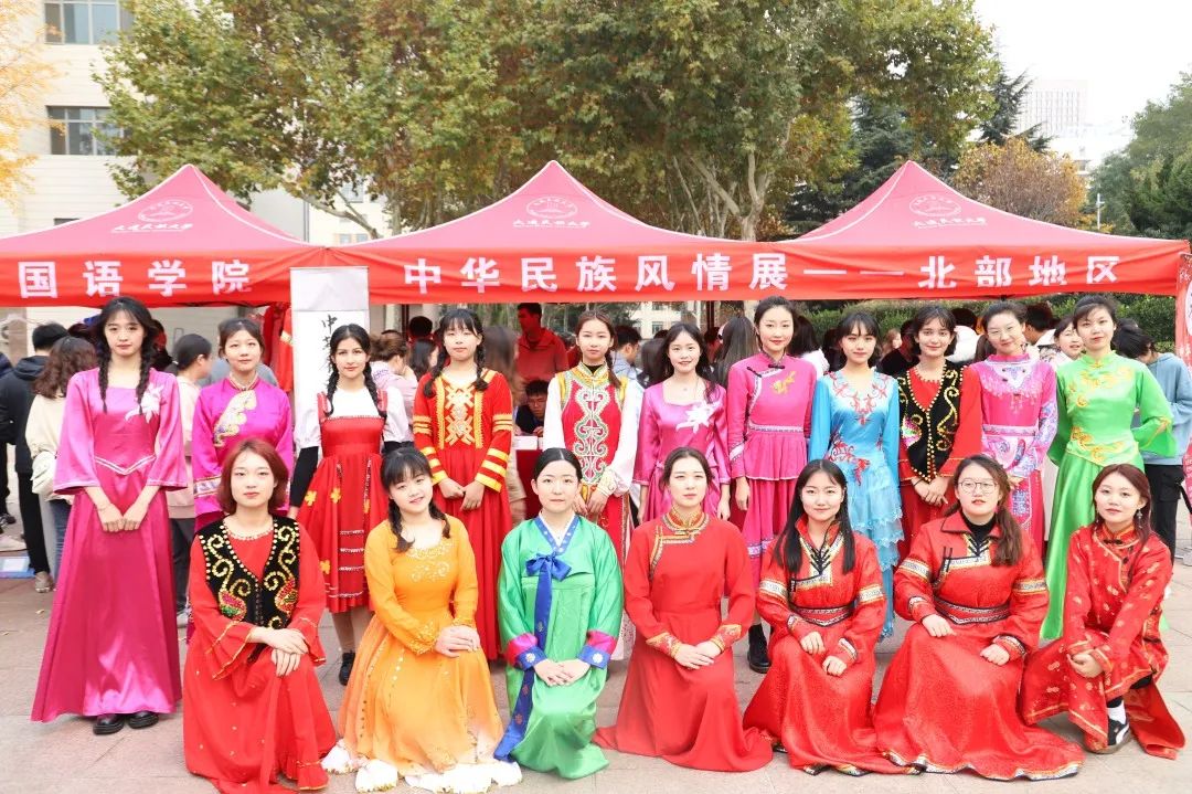 欧冠官方网站第十一届民族团结进步教育月中华民族风情展于11月15日上午在开发区校区图书馆门前广场如期举办。开发区校区各学院工作人员及千余名学生参加本次活动。