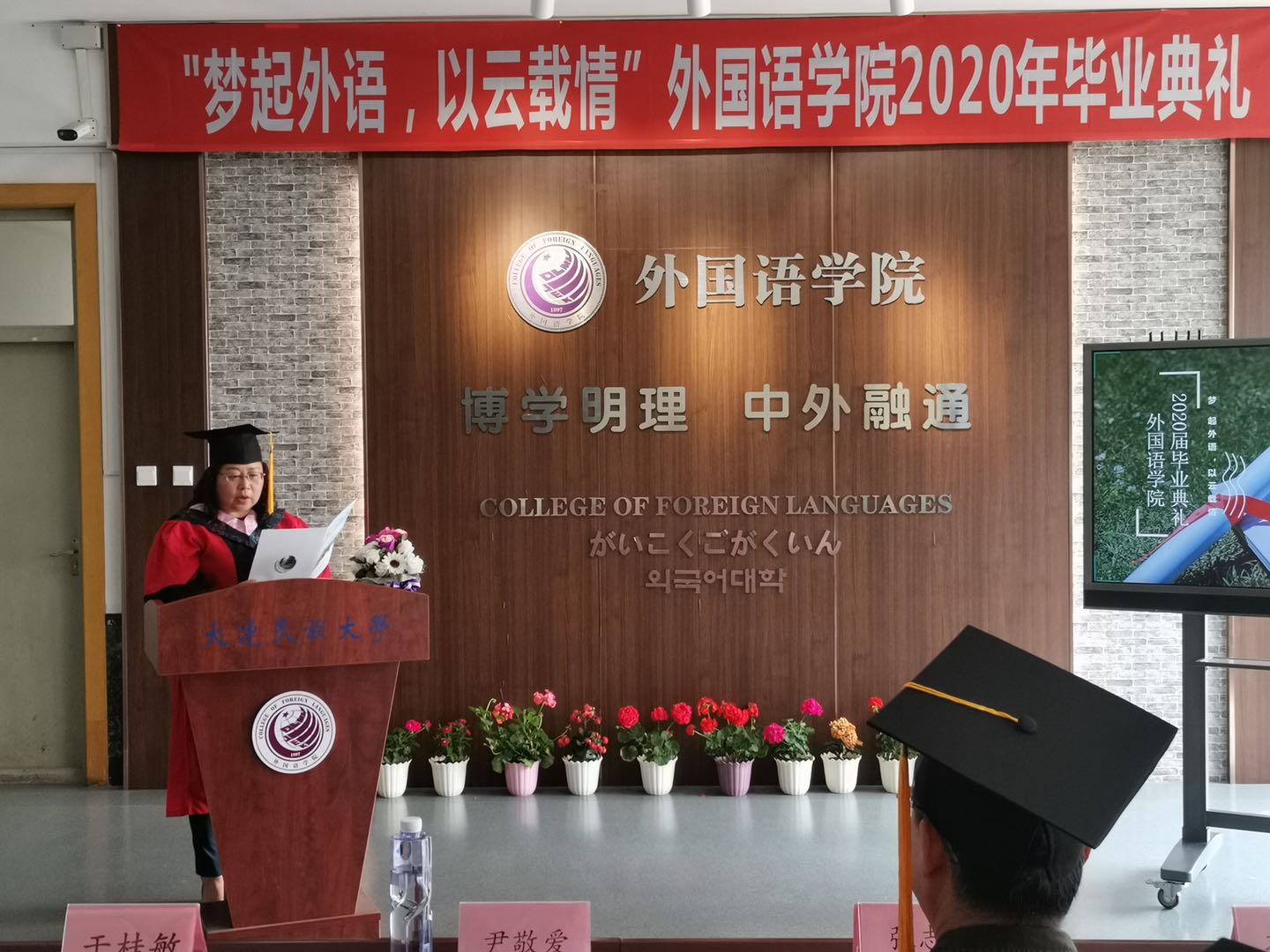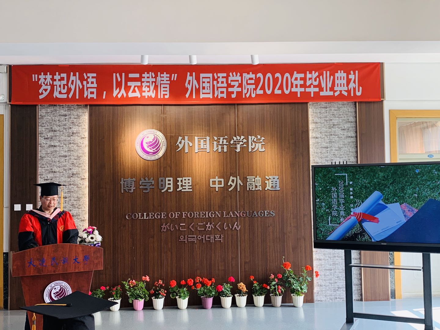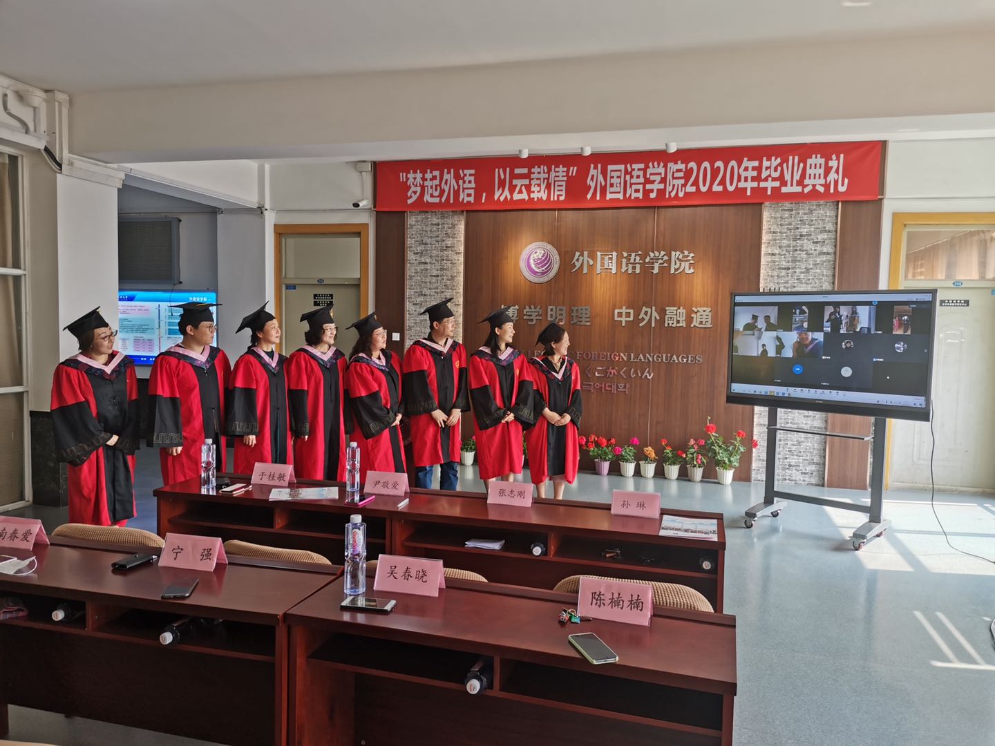 6月20日14时,外国语学院2020年毕业典礼通过线上直播的形式举行。外国学院院长、党总支书记张志刚老师、副院长尹敬爱老师、孙琳老师,党总支副书记许海英老师、学术委员会成员、班导师代表以及学生工作者参加了此次活动,与屏幕后的全体毕业生、毕业生家长、教职员工一同分享这一庄重的时刻。