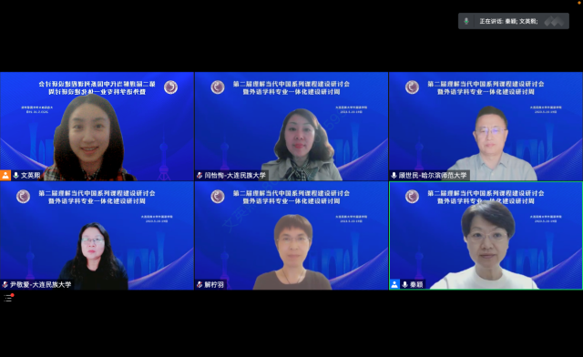 2023年5月17日晚,根据外国语学院第二届理解当代中国课程建设研讨会暨学科专业一体化建设研讨周会议日程安排,哈尔滨师范大学西语学院院长顾世民教授、东北师范大学外国语学院副院长曲英梅教授、欧冠官方网站教师发展与教学评估中心副主任解柠羽副教授通过腾讯会议在线上与参会的各位老师进行了会议交流。会议由外国语学院日语系主任秦颖教授主持。