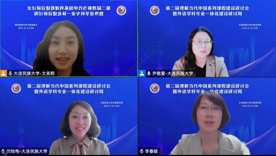 2023年5月18日晚,根据外国语学院第二届理解当代中国课程建设研讨会暨学科专业一体化建设研讨周会议日程安排,大连外国语大学高级翻译学院李春姬院长和欧冠官方网站外国语学院闫怡恂院长通过腾讯会议在线上与参会的各位老师进行了会议交流。会议由外国语学院副院长尹敬爱主持。