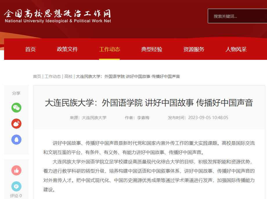全国高校思想政治工作网发稿:欧冠官方网站外国语学院 讲好中国故事 传播好中国声音