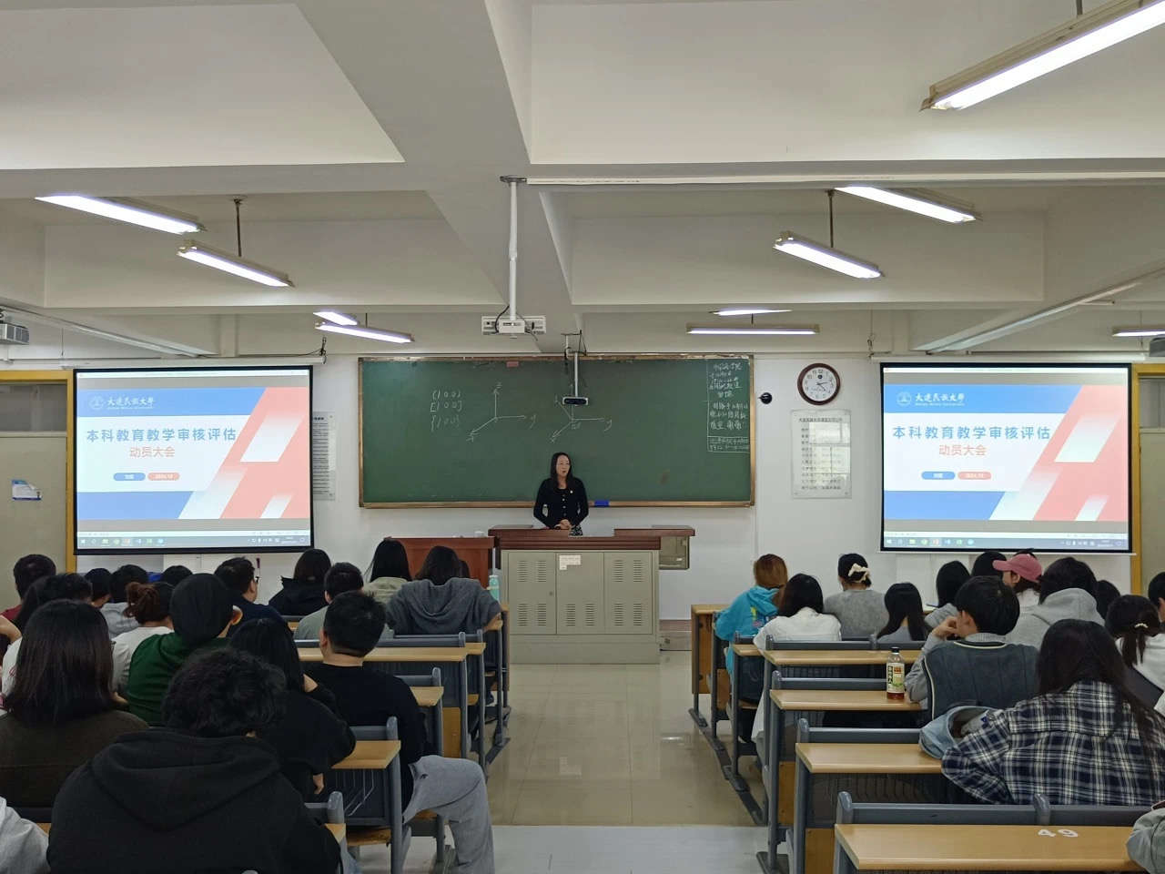 辅导员老师则根据不同年级学生的特点,分别提出具体的要求。她们强调,提高思想认识是首要任务,要求学生们充分认识到审核评估对个人和学校发展的重要性,呼吁大家共同营造良好的学习氛围,鼓励学生在学习上互相帮助、共同进步。此外,辅导员老师还强调了遵守各项规章制度的重要性,希望每位学生都能够自觉维护校园秩序,树立良好的个人形象。最后,创建文明寝室也是评估工作的一部分,她们鼓励学生在日常生活中注重文明礼仪,营造和谐的生活环境。