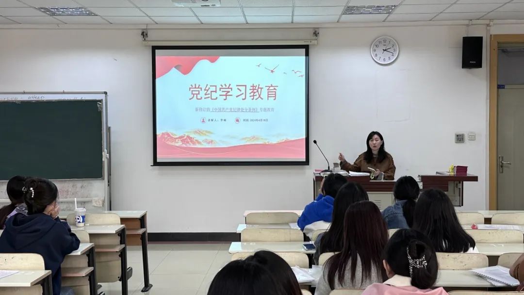 近日,外国语学院纪委委员、学生第二党支部书记李响为全体学生党员讲授党课,进行《中国共产党纪律处分条例》专题学习。