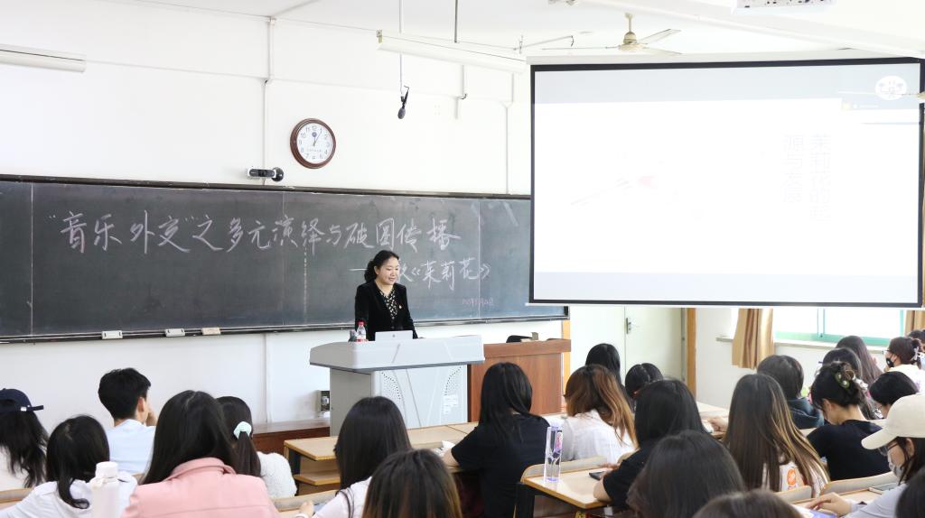 5月28日12:00,王璐璐老师结合《茉莉花》在国内外多个场合的精彩呈现,从传统五声音阶到创新改编版本,剖析其如何跨越语言障碍传播中国文化。此次党课将专业特色与思政教育深度融合,让学员在音乐魅力中感悟文化传播使命,引导大家在文化创新传承中发挥桥梁作用。