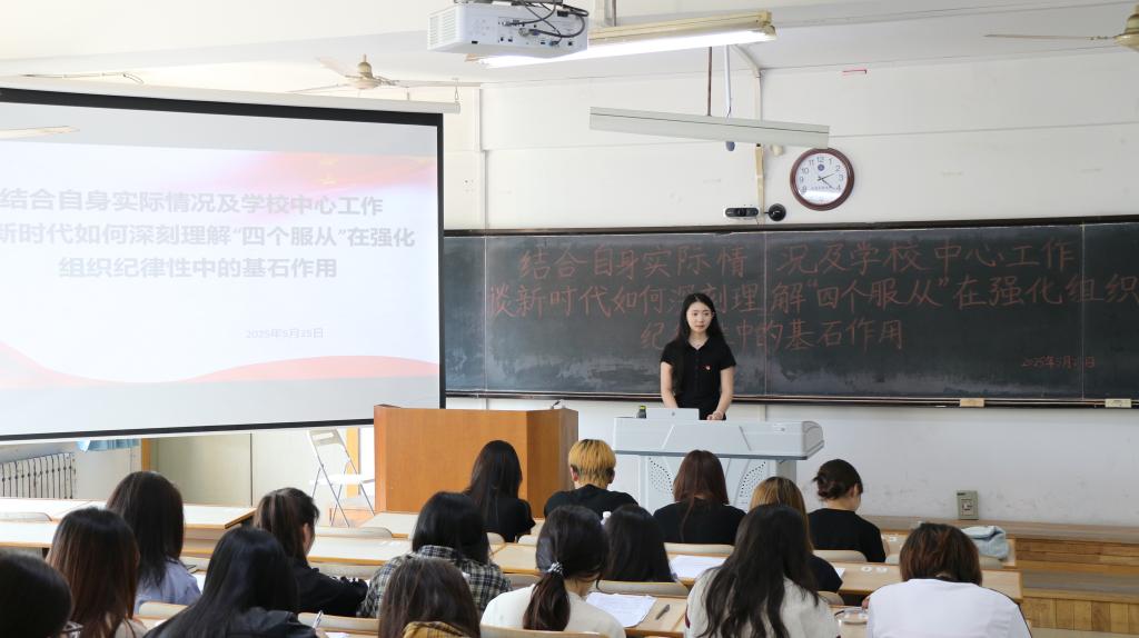 5月25日,外国语学院团委书记杨阳与学员们共同围绕“新时代‘四个服从’是强化组织纪律性的基石”展开讨论。她指出,我们应结合学校中心工作,从自身学习、工作出发,坚决服从组织安排,严守纪律规矩,凝聚集体力量,助力学校高质量发展。