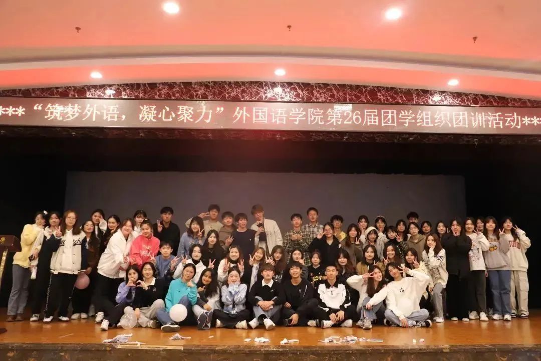 随着外国语学院团学组织纳新活动的圆满结束,为增加各部门成员的沟通交流,更好推动工作开展,团学组织于11月5日开展了以 “筑梦外语,凝心聚力”为主题的团训活动。