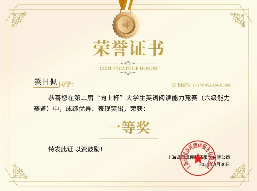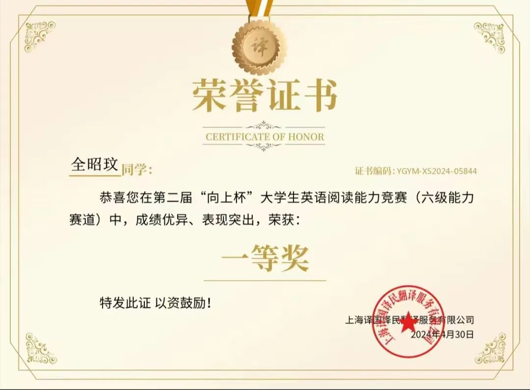 为进一步推进校企多元化合作,促进人才链与产业链有机衔接、人才培养与产业需求融合,探索政产学研多方协同育人培养模式,服务国家战略发展,担当铸魂育人使命,上海译国译民翻译服务有限公司举办以第二届“向上杯”大学生英语阅读水平能力竞赛,外国语学院学子积极参赛并荣创佳绩。