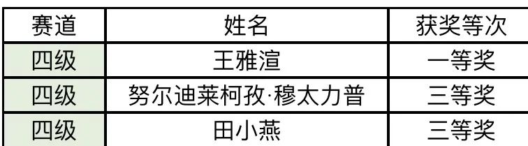 在四级赛道中,学院共有1人荣获一等奖,2人荣获三等奖。