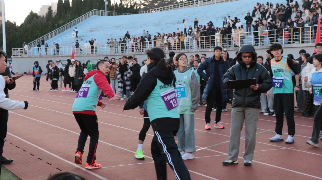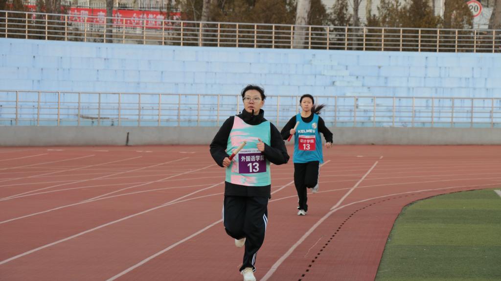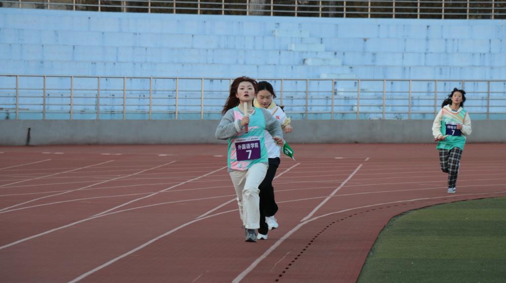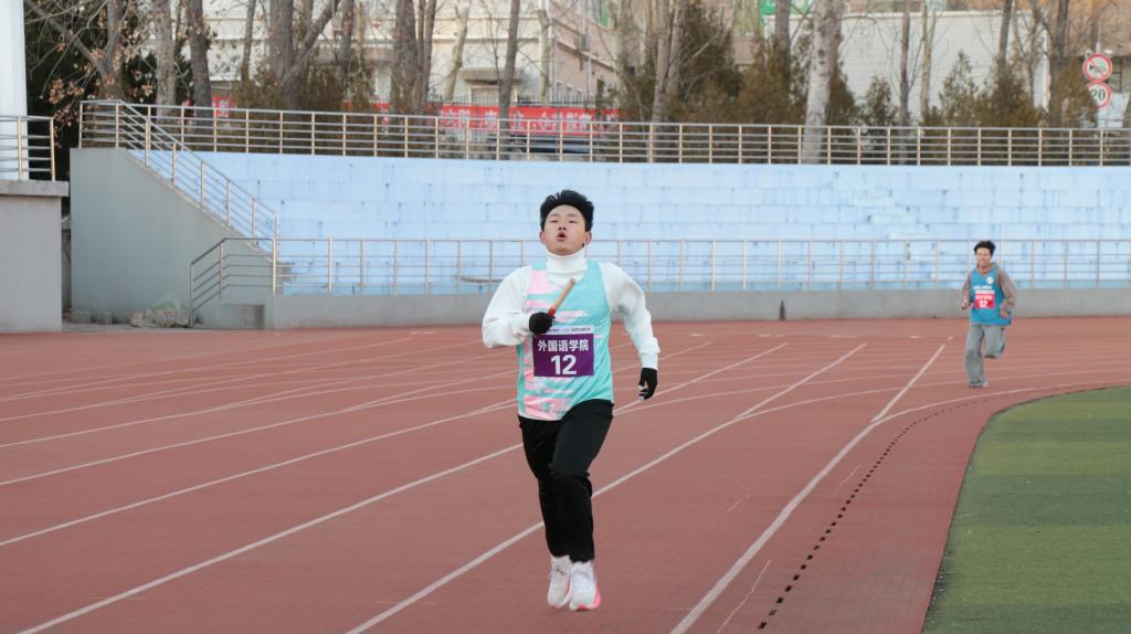 运动员们蓄势待发,伴随起跑发令枪响,外院运动员们如离弦之箭射向前方,以速度与激情将赛场点燃,展现出昂扬向上的力量。他们身姿矫健,眼神坚定;他们默契接力,传递力量;他们奋力追赶,突破自我。运动员们不仅是在挑战自己,更是在向“一二•九”运动中的先辈们致敬。在奔跑中牢记历史,不忘过去,在接力中缅怀先烈,奋发图强。
