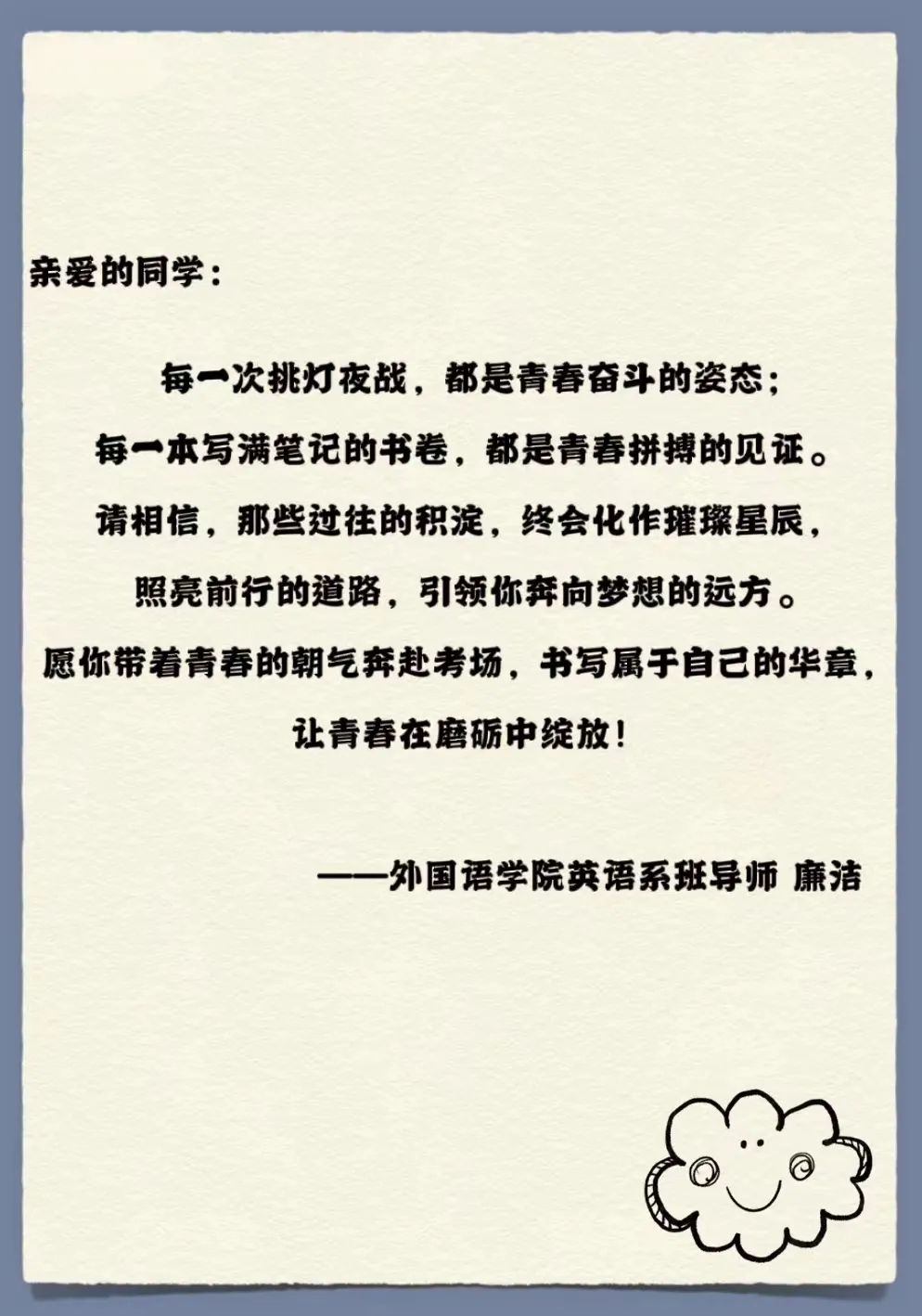 愿你们起笔精彩,收笔圆满