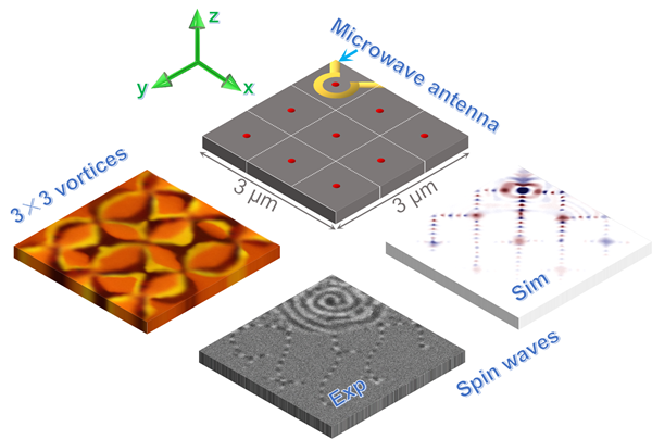 民大新闻网讯 日前,物理与材料工程学院董斌教授科研团队在磁涡旋研究领域取得突破性进展。相关工作先后以“Propagation of spin waves in a 2D vortex network”和“Construction of 1D vortex chain using a chiral nanostructure”为题在纳米科学类顶级期刊《Nano Letters》(DOI: 10.1021/acs.nanolett.1c00971,IF=11.238)和材料科学类Top期刊《Advanced Science》(DOI: 10.1002/advs.202001040,IF=15.84)上发表,欧冠为第一完成单位,李正华教授为第一作者。