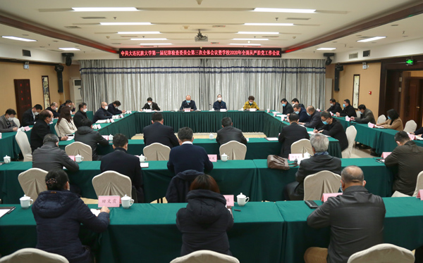 赵铸强调,要深入贯彻落实中央关于全面从严治党和纪检监察工作的决策部署。按照中央和上级新精神新要求,组织制定了学校2020年全面从严治党工作要点和学校工作要点,对抓好具体工作提出明确要求。学校纪委制定了今年纪检监察工作要点。这是把习近平总书记重要讲话精神和党中央决策部署落实到学校工作中的具体任务,各级党组织、各单位各部门和全体党员、干部都要坚定不移、全神贯注地抓好落实。