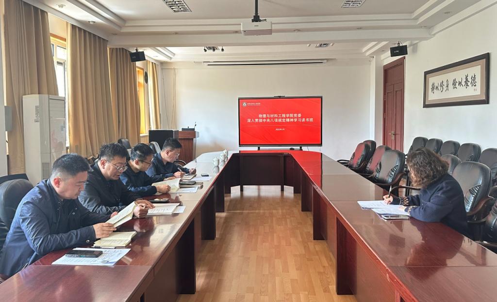 为深入贯彻习近平总书记关于全面从严治党和作风建设的重要指示精神,进一步增强党员干部的纪律意识和规矩意识,全面落实中央八项规定及其实施细则精神,5月8日,物材学院党委举办“深入贯彻中央八项规定精神”专题学习读书班。学院党委书记池成、院长徐文、党委副书记毕振华、副院长李正华、办公室主任沃雪梅参加本次学习。
