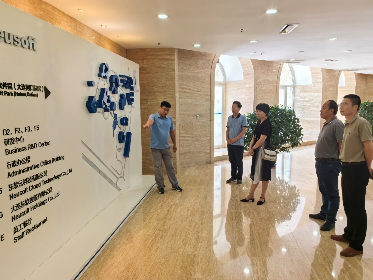 在参观环节,潘亮带领学院一行实地参观了东软集团,并着重介绍了东软在智慧城市、汽车智能与互联、行业信息化,在医疗健康领域,制造生产大型数字化医疗设备、云医院、医院医保信息化管理等方面的内容,并就学院关注的学生就业方向、职业晋升渠道等问题进行解答。