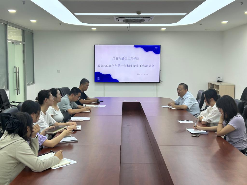 为确保新学期实验室教学工作规范、安全、有序开展,进一步明确实验室管理要求与教师职责,提升实验教学质量,信通学院于 2025 年 8 月 28 日下午 在学院会议室召开了新学期实验室工作动员会。会议由学院副院长孙炎辉主持,实验室全体人员参会。