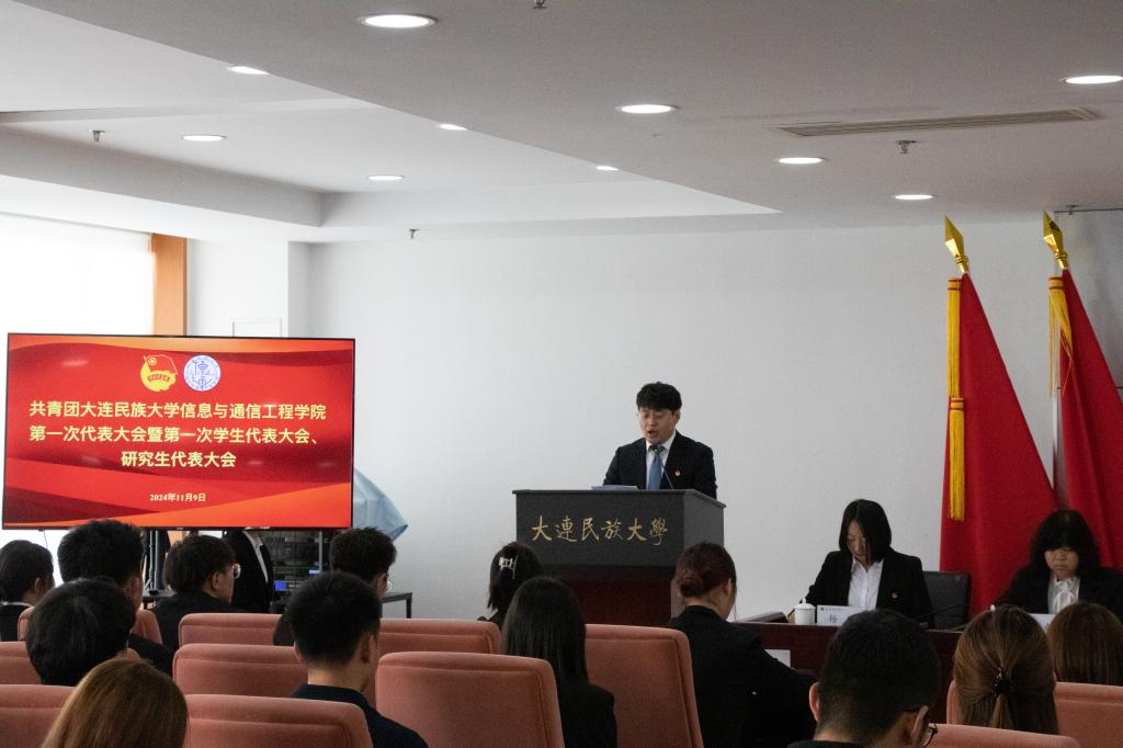 闭幕式结束后,召开了共青团信息与通信工程学院委员会、学生委员会、研究生委员会一届一次会议,选举产生了团委书记、副书记、学生会主席团成员和研究生会主席团成员,新当选的团学干部代表进行了表态发言。学院党委副书记苑杰对新当选的团学干部提出要求,要听党话、跟党走,将铮铮誓言转化为学院落实学校党代会精神,服务学校、学院发展的行动自觉;要带着新传承,领跑新学风。做思想上的引领者、学习上的示范者,行动上的先行者,铸牢中华民族共同体意识,助力学生成长成才;要贯彻新要求,彰显新作为,牢牢把握新时代新征程学校对团员青年的学生组织的新要求,坚决贯彻学校党委决策部署,在工作场上练就过硬本领,展现新的作为。