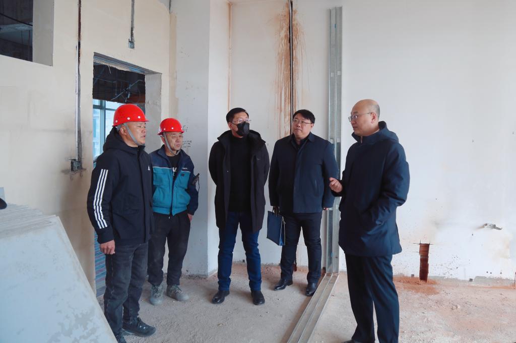 赵铸来到勤德楼B区,看望正在维修改造的施工人员,详细了解了施工现场的安全保障、工期进度以及施工质量。他强调,“施工安全是工程建设的首要任务,要牢固树立安全意识,确保安全顺利完工。祝大家新春快乐,身体健康,安全生产!”