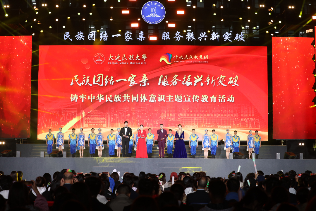 此次主题宣传教育活动以铸牢中华民族共同体意识为主线,通过歌曲、舞蹈、朗诵等多种艺术形式,融合多民族艺术元素,紧扣时代脉搏与文化内涵,表达了民族团结一家亲,服务振兴新突破的情怀与担当,奏响铸牢中华民族共同体意识时代强音,用高雅文化助力辽宁全面振兴新突破三年行动,助力新时代大连“两先区”“三个中心”高质量发展,为学校推进高水平现代化综合大学建设凝聚奋进力量,吹响前进号角。著名歌唱家腾格尔、曲比阿乌,青年歌手扎西顿珠和彝人制造组合等众多知名演员领衔出演,现场万余名观众在两个小时的中华民族艺术文化的视觉盛宴中沉浸陶醉。